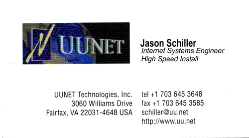 Prior to working in Network Engineering, I worked in the High Speed Installation Department at UUNET. Here I installed every thing from 56K DS-0 to optically protected OC-3 circuits with frame relay and ATM encapsulation. I had a chance to learn about transfering and creating new DNS zone files and transfering or regestering domain names. I also learned how to configure and troubleshoot BGP. I have had a chance to work with some very high profile customers like the NASDAQ with very complicated BGP configurations. |