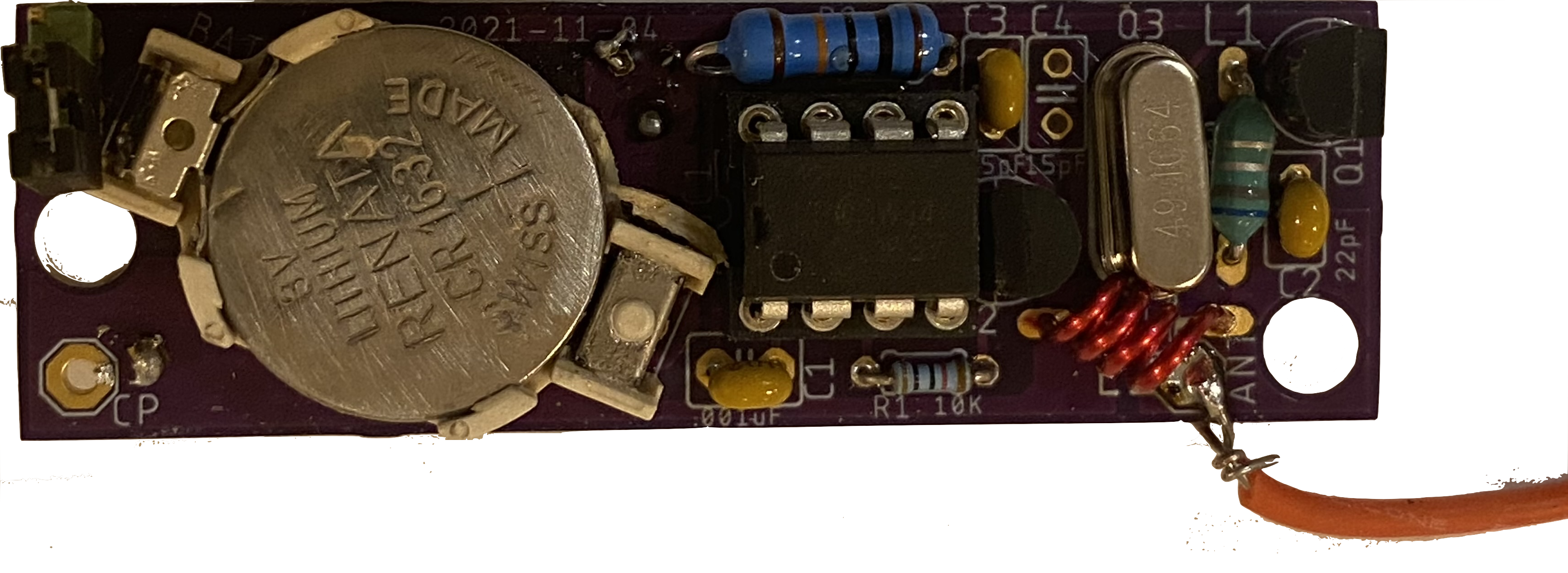 | L2 | 4 turns #22 magnet wire wound on 1/8" drill-bit | mouser: 566-8051 |