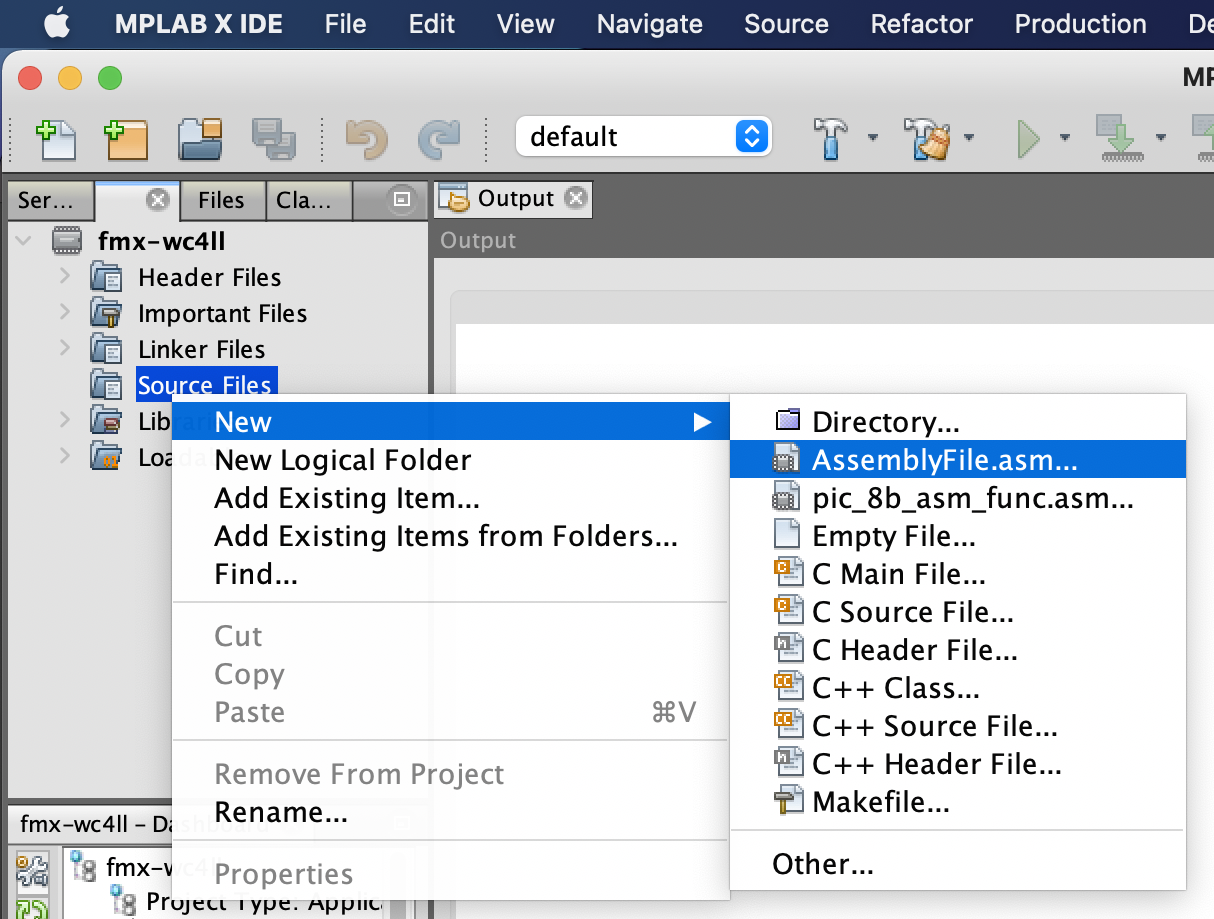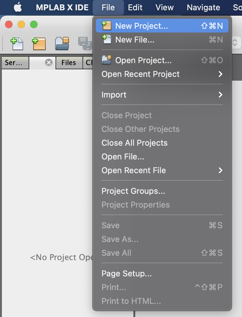 Open MPLAB X IDE. Start a new project: select > File > New Project from the menu or click on the the new project icon (yellow folder with a green plus) |