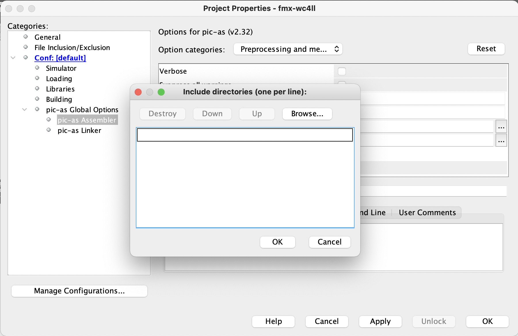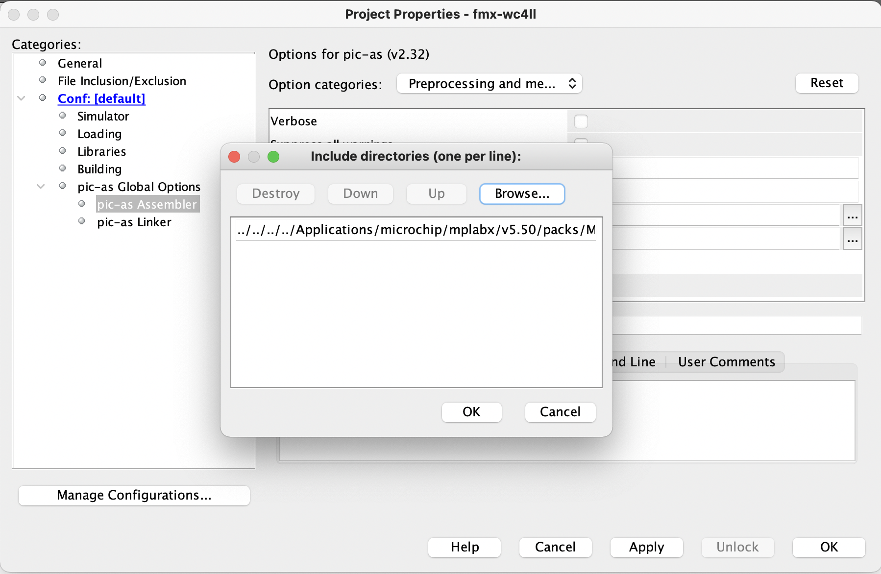 Click on pic-as Assembler. And the include directories. (the icon has three dots) |